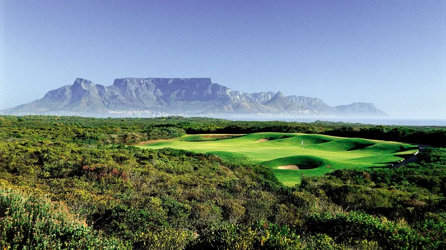 A modern links-style course cut through coastal fynbos north of the city, with views across to Robben Island and Table Mountain. Bring a ball you don't mind losing — the rough is thick and the wind is serious. A favourite with corporate days thanks to the clubhouse sitting right on the ocean.
